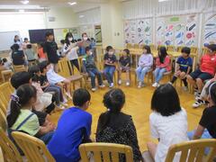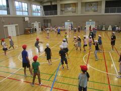 今日は、雨天のため、体育館や教室などの室内で、1年生から6年生までが集まった「たてわり班」ごとに、子どもたちが遊んでいました。上級生が下級生を上手にリードしながら、今日も楽しく活動することができていました。