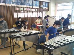 4年生が、音楽の授業をしていました。今日は、「世界に一つだけの花」の曲を、様々な楽器を使って演奏していました。木琴や鉄琴、ピアノや電子キーボード、コンガやボンゴ、大だいこや小だいこ、シンバル、タンブリンなど、新型コロナウィルス感染防止に配慮した活動を工夫しながら学習しています。子どもたちは、曲調に乗って楽しんで取り組んでいました。