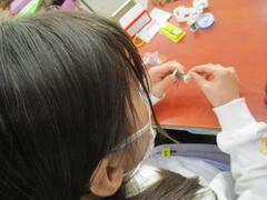 5年生が、理科の授業をしていました。今日は、「電磁石の性質」の単元の導入で、鉄芯を入れたボビンにエナメル線を巻き付けて、コイルを作っていました。今後は、このコイルに電流を流して、電磁石の性質を調べる実験をする予定です。