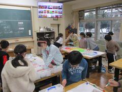 3年生が、図工の授業をしていました。今日は、「アートなかげ〈案内人〉」という題材で、展覧会に出品する共同作品に取り組んでいました。グループの友達と楽しみながら協力して活動していましたので、2月の展覧会を楽しみにしてください。