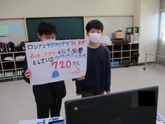 今朝は、タブレットを使って「リモートユニセフ集会」を行いました。代表委員会の子どもたちが「ユニセフ」について調べた内容を全校児童に伝えるとともに、募金への協力を呼びかけました。来週の1月25日(水曜日)と26日(木曜日)に募金活動を行いますので、ご理解とご協力をいただけましたら幸いです。