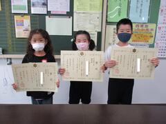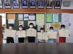 5月に実施した1年生と2年生の「はたらく消防の写生」の表彰式を行いました。オンラインによる全校朝会で、優秀賞3名、入選6名の児童を表彰しました。校長先生から賞状を受け取る姿は、皆さん凛として立派でした。