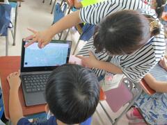 【9月9日】2年生が、生活科の学習でタブレットを使って学習していました。