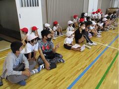 今朝は、体育館で「水泳朝会」を行いました。5・6年生の体育委員会の児童が、人数確認や入水のしかたなどの見本を見せてくれました。また、「しゃべらない」「走らない」「飛び込まない」「先生の話をよく聞く」ことなどを守って、「安全で楽しい学習にしていきましょう」と呼びかけてくれました。