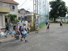 今年度初めて「火災」による避難訓練を行いました。今日は給食室から出火の想定です。地震の時と異なり、避難経路を考えて行動する必要があります。子供たちは放送をよく聞いて、しっかり訓練に取り組んでいました。「お」「か」「し」「も」「ち」 押さない、駆けない、静かに、戻らない、近づかない、の約束を守り、落ち着いて行動することができました。