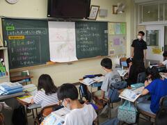 教育実習生が、2年生の国語の研究授業をしました。今日は、物語文「スイミー」の単元において、物語に登場する魚たちの様子を想像する学習でした。子どもたちは、教育実習生の発問に対して、とても意欲的に発言していました。