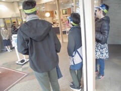 開店のあいさつをはじめに、ごみ拾い、チラシ配り、ライン登録の宣伝、館内放送などの仕事を体験することができました。