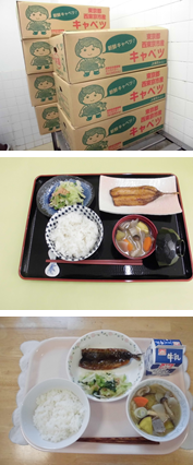 5年2組の児童が考えた献立の紹介は「秋の色合いと西東京市のキャベツ」です。和食のことや献立作成の学習を進めていく中で、農産物の産地について社会科で学習したことを思い出しました。そこで、西東京市のキャベツの生産量が東京都で第2位であることに着目しました。地域のものを地域で食べる「地産地消」の実体験です。