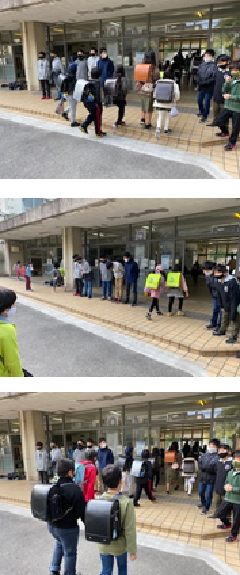 今日は、今年度初めて避難場所が校庭の避難訓練を行いました。10時5分、子供たちは、地震が起こった際の合図音を聞き、「机の下にもぐり、両手で机の脚の前後をしっかりともち、頭を隠してじっと揺れが収まるのを待つ」「揺れが収まったらすぐに校庭に避難をする」訓練を行いました。子供たちには、3つお話をしました。まず、コロナ禍であっても、地震や火事が起こることは想定をしておかなければいけないということ。次に、災害が起こったときにどこを通って避難するのがよいのかを教室で確認しておくこと。最後に、災害時こそ慌てず放送、または、周囲の声をしっかりと聞き、安全に避難するための方法を知り自分の身を守りましょうという話をしました。ご家庭でも、子供たちと災害時についてお話をしてみてください。