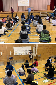 今日は、12時35分より全校昼会を行いました。校長先生からは2点お話がありました。まず1点目は、土曜日に行われた食育授業についてです。校長先生は土曜日、全てのクラスの授業を見て回りました。学年やクラスにより、お箸の使い方や食事のときの「いただきます」の挨拶の意味、栄養についてや和食の歴史についてや食事のマナーについて等学んでいました。皆さんの健康づくりや体力づくりに大切な学習でした。先生のお話を真剣に聞いたり、自分の考えをワークシートにまとめたりすることで学びを深めたことと思います。また、「食」は、生きていくために必要ですので、学んだことをこれからの学習や生活に役立ててください。本日、11月24日は「いい にほんしょく」の語呂合わせで「和食の日」と呼ばれています。和食は世界に誇る、世界遺産です。外国の料理を洋食と言ったり、各国の料理ならばフランス料理、イタリア料理、中華料理などという言い方をしたりします。今日の給食は、和食です。お箸は上手に使うことができましたか。それぞれの栄養素は分かりますか。「いただきます」の挨拶はきちんとできましたか。食育の授業で学んだ意味をしっかりと生かし、食育についてや和食について考えていきましょう。
