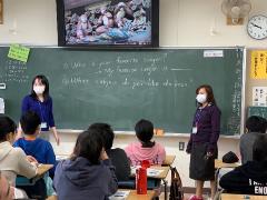 6年生の外国語の授業です。講師の川井先生とALTのデイジー先生が、テイーム・テイーチングで授業を進めていました。今日は、世界で活躍する人の話を聞いたり、世界で活躍する自分になりきって友達と話したりする学習をしました。