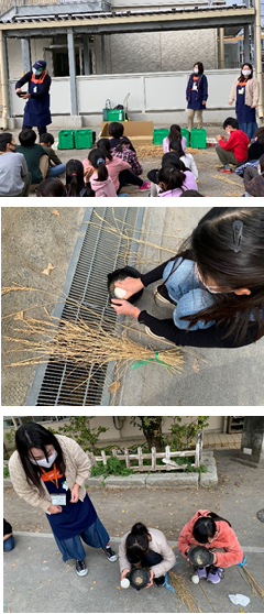 5年生が、総合的な学習の時間「Oh!お米の達人」の単元で、「籾摺り体験」をしました。今日は、生活協同組合パルシステムの方々を外部講師としてお迎えし、籾摺りのやり方を教えていただきました。軟式野球ボールとゴマすり容器を使って、子供たちは、ゴリゴリ、ゴリゴリと籾摺りをしていました。