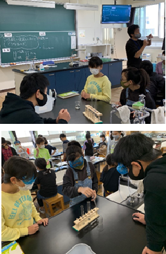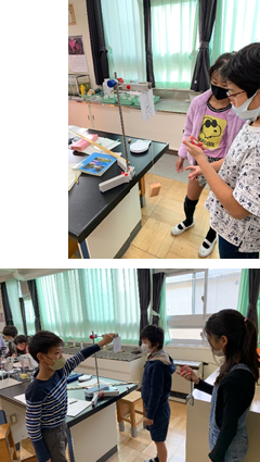 6年生が、理科室で実験をしていました。「水溶液の性質」を調べる実験でした。机上を整理したり、保護メガネを着用したり、安全に気を付けながら活動していました。