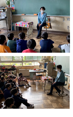 今日は、「トムテの会」の皆さんが、1年生に読み聞かせをしていただきました。2匹の動物の人形を使って、お二人で役割分担しながら分かりやすく物語を聞かせていただきました。1年生は、初めての「トムテの会」の皆さんの読み聞かせに、興味津々で聞き入っていました。