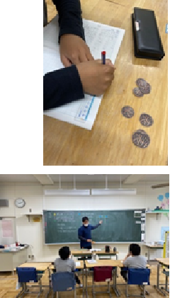 わかば学級の6年生が算数の学習を行っていました。「場合の数」という学習です。問題は、「メダルを3回投げます。表と裏の出方には、どんな場合がありますか」です。順列について、落ちや重なりがないように順序よく整理して調べることができるように指導をしました。裏と表のコインの模型を使い、図や表を使い順序よく調べてまとめていました。