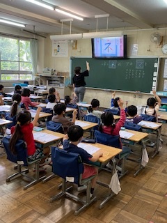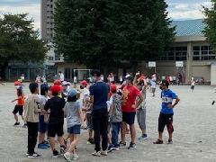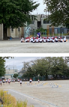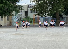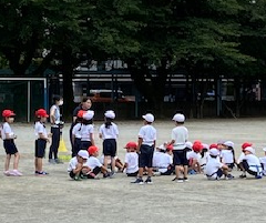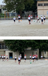今日は珍しく涼しい1日となり、子供たちも思いっきり体育の学習に張り切って参加していました。1年生は、先生の顔を見ながら説明を聞いている姿が見られ成長を感じる瞬間でした。