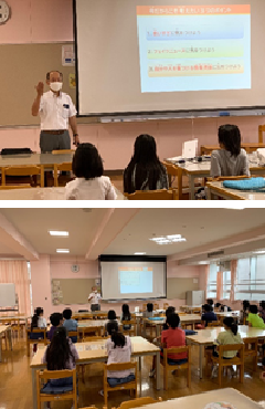 6年生が、セーフティ教室で「ファミリeルール講座」の学習をしました。東京都都民安全推進本部の方を講師として、子供たちは、「ネット・SNSの賢い使い方」について学びました。ご家庭でも、SNSとの関わり方について話題にしてみてください。
