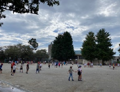 休み時間の一コマです。まだまだ夏の暑さは残りますが校庭にもトンボが飛ぶ姿が見られ、時折、秋風が吹いて来ることもあり、秋の訪れを感じられる休み時間でした。高学年の児童が担任の近くに集まり、今まさにみんなが校庭に飛び出そうとしている様子が微笑ましかったのでパチリ!
