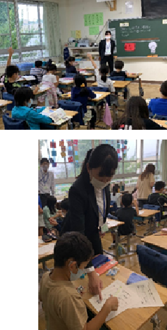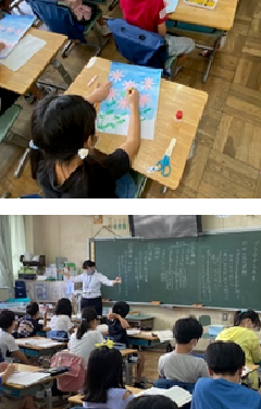 各クラスの子供たちの様子です。一年生の有るクラスは、図工でコスモスの花を描いていました。色紙を切ったり、はったり、クレヨンで作品を仕上げました。