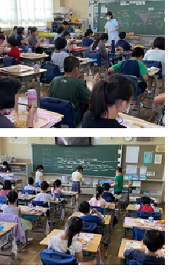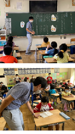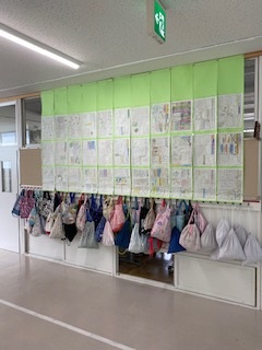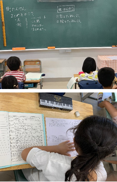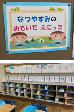 1年生の教室には、「なつやすみの おもいで えにっき」