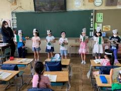 1年生は、昨日の給食で食べた「おにぎり」を思い出し、国語の授業で「おむすびころりん」の音読発表会をしました。登場人物の気持ちや場面の様子を考えながら表現豊かに音読していました。