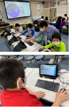 今日は、西東京市ICT支援員の方が、2年生とわかばB学級の子供たちに、プログラミング学習の授業をしていただきました。2年生は「ビスケット」という教材ソフトを使って、パソコン上で自分が描いた魚などを動かすという内容の学習をしました。わかばB学級は「アワーオブコード」という教材ソフトを使って、動きを指示するブロックを移動させながら、キャラクターを動かすという内容の学習をしました。子供たちは、楽しみながらプログラミング学習に取り組んでいました。