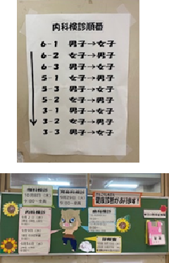 今日は内科検診(3年生、5年生、6年生)がありました。保健室の前には2学期に行う健康診断の予定が丁寧に掲示されています。次回は9月9日(水曜日)に1年生とわかば学級の子供たちが内科健診を受けます。