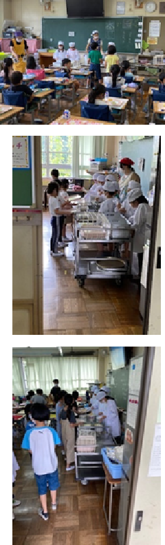 昨日から教育実習生の先生が3名本校で勉強をしています。今日は、給食の準備も一緒に行い、子供たちへの給食指導について担任の先生から学んでいました。給食の配膳の後は、子供たちのお皿に「いただきます」の前に先生が一人ずつのお皿へ増やしています。衛生面には特に気を使い配膳を行っています。