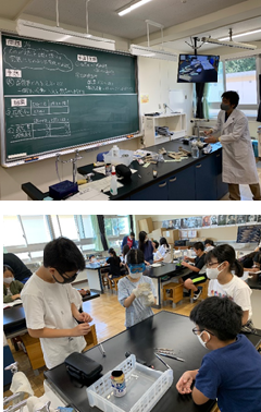 6年生の理科「ものの燃え方」の学習です。ものが燃える前と後の空気の変化を調べる実験です。今回は、火を扱う実験でしたので、感染防止と安全の両面に留意しながら、理科室で実施しました。