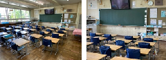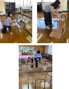 音楽室です。床にはワックスを塗り、2学期からは音楽室も使い適切な距離も保ちながら、学習を進めていきます。夏休み中は、先生たちもどのようにしたら安心して安全に授業が進められるかを考えて話し合っていました。音楽室の椅子も、一つ一つ消毒をしました。校長先生までもが心配し、隣同士の距離はどうか、前後の距離は保たれているかどうかなど自ら椅子の幅を確認しながら並べていました。