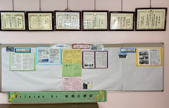以前、ひとこと日記でもお伝えしていた小中連携コーナーですが、このような形になりました。各学校から送っていただいている内容や配布物などを掲示して子供たちにも見てもらっています。近隣の学校といえども、交流の機会はそうそうありません。特に、今の時期はコロナ禍にあり、交流もままなりません。中学校へ進学する6年生や進学を意識し始める5年生が、興味をもって少しでも安心して進めるように工夫をしています。職員昇降口の前にコーナーがあります。