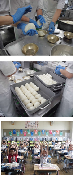 そこで、給食で1年生に特別に「おむすび」を作りました。