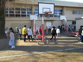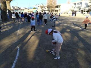 プレゼントはどこにあるのかな?校庭を大捜索中です。