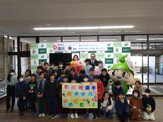 わかば学級の4〜6年生の子どもたちは、西東京市の田無庁舎で行われた「東京2025デフリンピック 衣川暁選手のメダル獲得 報告会及び表彰式」に参加してきました。子どもたちが作ったお祝いのメッセージも、衣川選手に受け取っていただきました。デフリンピックの開幕前の壮行会でも、子どもたちは衣川選手にお会いしましたが、本日もう一度会うことができて、子どもたちはとても嬉しそうでした。衣川選手、本当におめでとうございます!