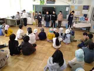5年生の子どもたちは、地域の保育園「Nicot田無」の子どもたちを田無小学校に招待しました。一緒に手をつないで学校を案内したり、楽しいゲームで遊んだりして、交流を深めることができました。保育園の子どもたちは、あと2か月もすれば小学校に入学します。不安や緊張もあるかもしれませんが、大丈夫ですよ。今日一緒に遊んだお兄さん、お姉さんたちが、みなさんのことを優しく迎えてくれますからね。