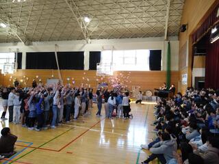3・4時間目に「6年生を送る会」がありました。今まで学校の大黒柱として頑張ってきた6年生に向けて、在校生の子どもたちは楽しい出し物を通して、感謝の気持ちを一生懸命伝えていました。もうすぐ6年生が卒業してしまうのは寂しいですが、私たちも子どもたちと一緒に、笑顔いっぱい、元気いっぱいに送り出そうと思います。