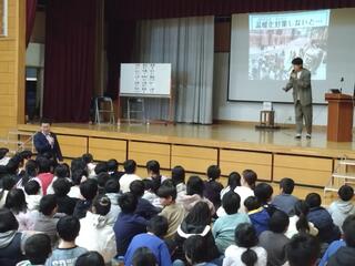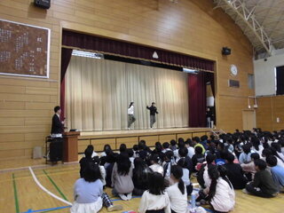芸人さんの巧みな話術やコミュニケーション能力の高さは、さすがの一言ですね。あっという間に、子どもたちの心をつかんでいました。私たち教職員も、大いに学ばせていただきました。