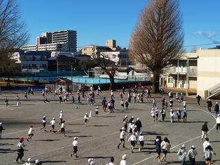 前置きが長くなりました。実は、田無小学校では、12月に入ってから持久走チャレンジが行われていました。中休みになると、放送で『Runner』が毎回流れ、子どもたちは時間の限り校庭を走り続けていました。寒い日が続いても、子どもたちは友達と楽しそうに元気いっぱい走っている姿が、とても印象的でした。