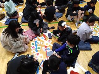 お笑いの時間で会場が温まった後は、動画やスライドを使ってSDGsについて丁寧に説明をしてくれました。また、子どもたちが興味をもって学べるように、クイズ形式やカードゲームを取り入れながら、楽しく進行してくれました。芸人さんたちが子どもたちに寄り添いながら、優しく声をかけてくださったので、子どもたちも不安や緊張を感じることなく、リラックスした気持ちで特別授業に参加することができました。