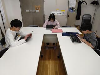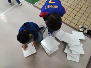 一方で、タブレットの敷き詰めだけでは飽き足らず、昔ながらのアナログの敷き詰めに挑戦している子もいました。実際に四角形を切って、ノートに貼っていく作業を、何回も何回も繰り返していました。タブレットと違って手間はかかりますが、苦労した分だけ、理解度も高まっているかもしれませんね。
