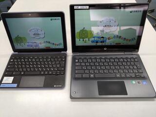 左が新しいタブレット、右が今までのタブレットです。サイズがコンパクトになりました。