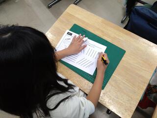 「お手本」には、子どもたちが自分で書き込んだ注意点が満載です。