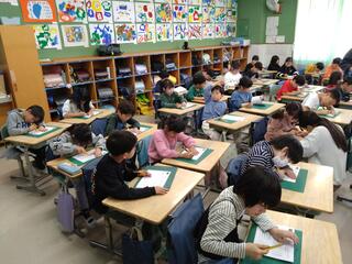 慣れない筆運びに苦戦する子、席書会の雰囲気に緊張する子もいましたが、どの学年の子どもたちも最後まで集中して取り組んでいました。子どもたちの作品は各教室前に掲示されますので、本校にお越しの際は、ぜひご覧ください。