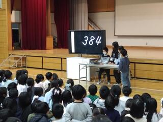3番目の演目は「フリースローチャレンジ・リターンズ」です。大人気のバスケットボールチームが再び登場です。前回は60秒間で5本のフリースローを成功させましたが、今回はなんと、7本のシュートを決めることに成功しました。(下級生の中には、この6年生チームのファンもいるようです。)