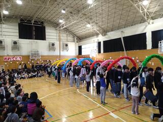 一際大きな歓声が上がりました。ステージから飛ばした「紙ひこうき」が、体育館の反対側の壁の近くまで飛んでいきました。結果的に、この「紙ひこうき」が最長飛距離を記録することになり、見事「飛行機王(ヒコーキング)」の称号を手にしました。