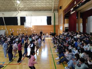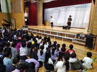 今日のロング昼休みのことです。体育館に続々と子どもたちが集まってきます。ステージのある体育館前方から子どもたちが座り始め、どんどん場所が埋まっていきます。もはや田無小学校でもお馴染みの光景になってきました。間もなく、子どもたちが楽しみにしている「TANASHI ライブ・パフォーマンス」が始まります。