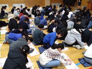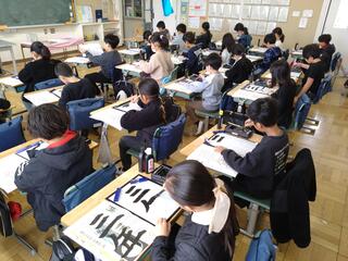 これは、子どもたちが書初めに取り組んでいる一場面です。6年生の席書会は体育館で行われていましたが、慣れている教室で席書会を行っていた学年もありました。席書会は、3学期初めの恒例行事です。タブレットやスマホを自由自在に使いこなす令和の小学生ではありますが、昔に比べれば、筆や鉛筆を使用する機会は確実に減少しています。それだけに、書写の授業、席書会のような場はとても貴重であり、大切にしたい時間です。