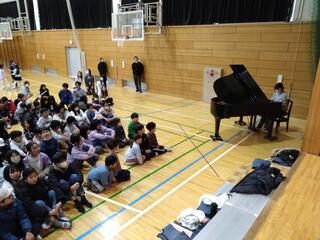 続いて、ピアノの演奏です。曲は、シューベルトの即興曲。優雅な美しいピアノの調べに、会場の誰もが癒されているようでした。子どもたちだけでなく、会場にいた先生たちもうっとりした表情で演奏を聴いていました。