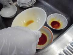 学校薬剤師の指導のもと、学校給食でいつも使用している食器の洗浄が十分行われているかを調べました。食器に残ったでんぷんと、脂肪の検査をしました。残留でんぷんの検査は、ヨウ素でんぷん反応で行いました。残留脂肪の検査は、クルクミン溶液を使用し、紫外線を当てて反応を確認しました。引き続き安全安心の給食づくりを行っていきます。