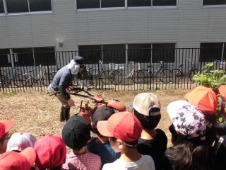 総合的な学習の時間に大豆について学んでいます。5月に地域の農家の方にお越しいただき、耕運機で土を耕す様子を見学しました。また、肥料の種類などを教わりました。最後に、大豆の苗を植えました。大きく育つよう一生懸命、水やりをしたり、草ぬきをしたりしています。